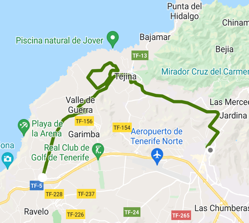 Tar sedan TF-16 mot Tejina. Framme vid tiotiden och kör in på en bra parkering. Man måste dock gå efter väg TF-13 där det är grym trafik.