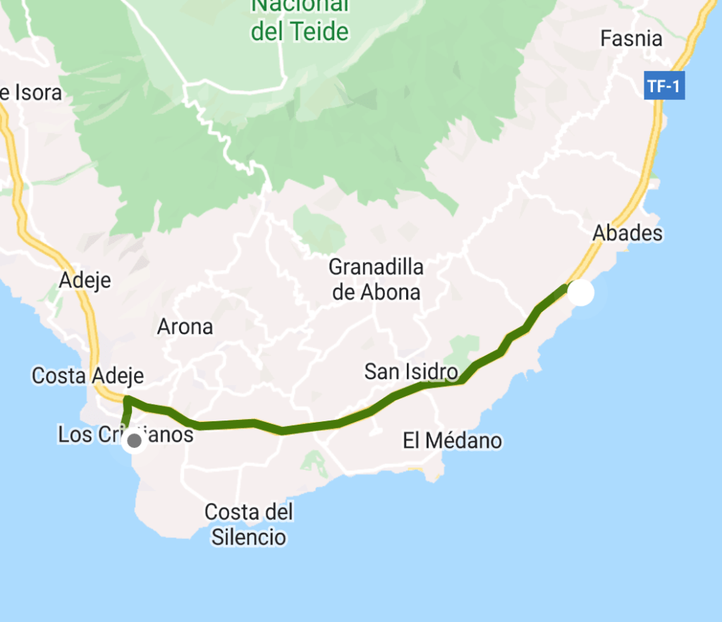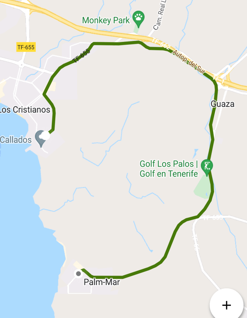 Det börjar blåsa rejält på morgonen. Mestadels klart och +20 grader. Vi lämnar parkeringen på Calle Caleta i Los Cristianos vid niotiden och kör till Palm-Mar.