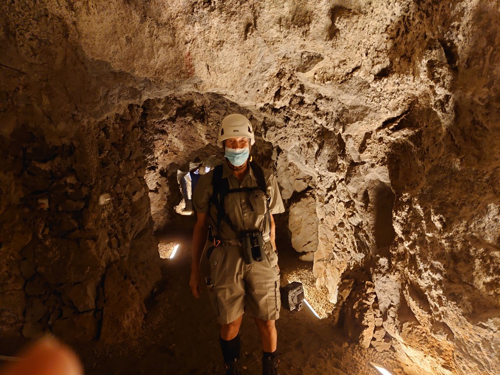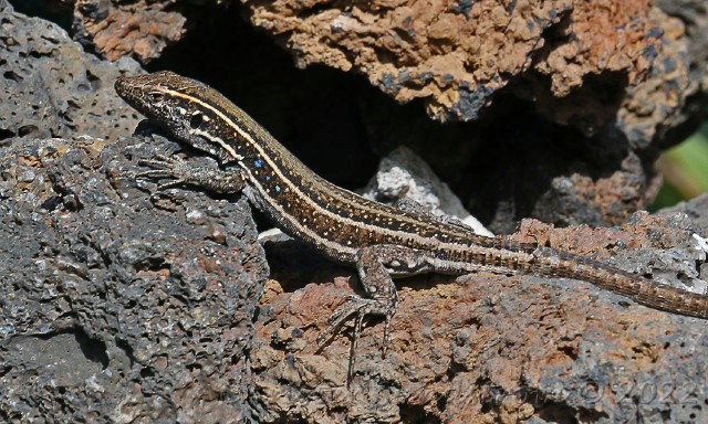 Klart och friskt vatten. Strax före elva lämnar vi ställplatsen i La Maceta efter att fyllt på med färskvatten och tömt gråvatten. Vi kör till Eco Museet för att kolla på ödlorna. Nu är det öppet och man måste ha guide för att komma till ödlorna och en tur börjar om 15 minuter. Betalar 19€ för den guidningen och vi tillsammans med 8 andra spanjorer följer guiden som först visar en grotta i berget som bildades av en luftbubbla då Lavan rann nerför berget.