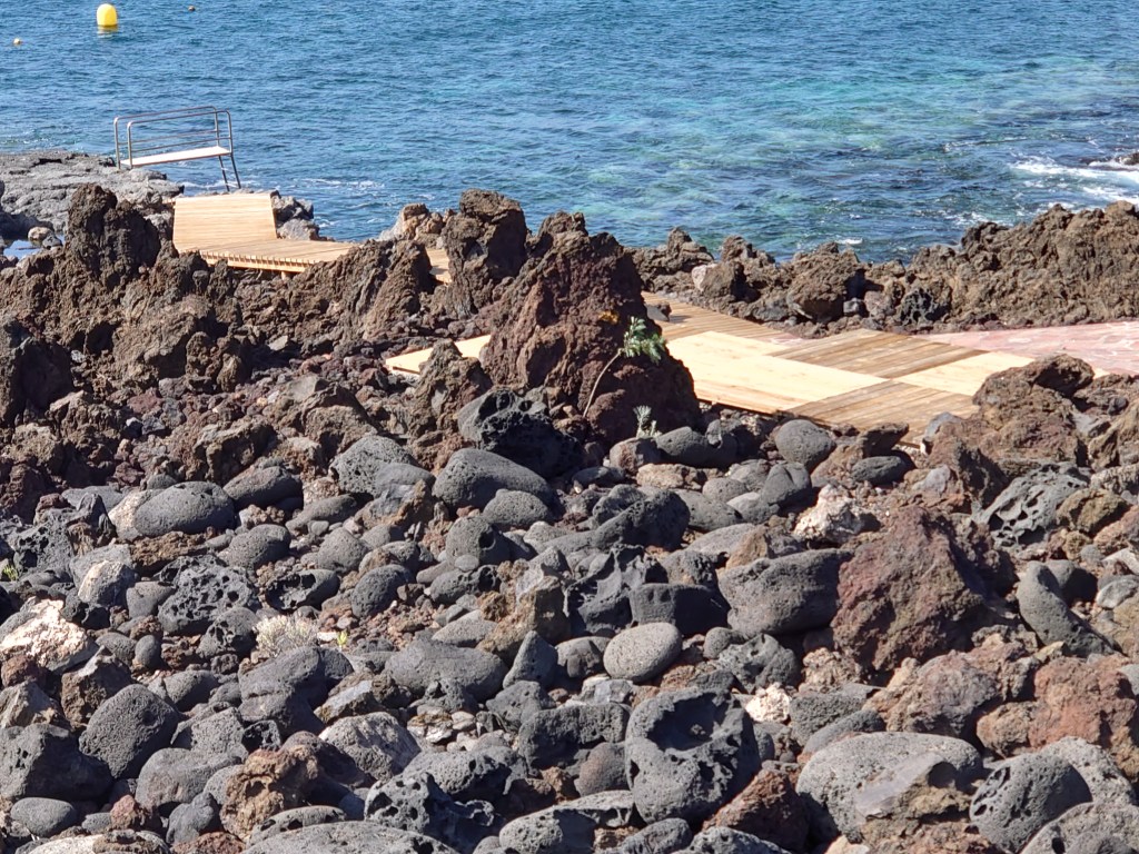 Efter en rundtur i resterna efter en forntida by kör vi mot La Caleta, på östra sidan av ön. Följer väg H-5 som går genom en tunnel upp över berget. Vid La Caleta skall det vara bra enligt omdömen och fina havsbassänger att bada i. Vi blir mycket besvikna då vi kom fram. Ställplatsen var efter en gata och havsbassängerna avstängda. Vi kör förbi platsen och stannar efter en gata högre upp och gör lunch i bilen. Det blåser dessutom friskt från havet. Vi kör nu till Tamaduste, en liten by drygt 5 km norrut där en parkering vid havet fått bra omdömen. Även här skall det finnas havsbassänger. Vi kör dit och hittar en vändplats precis där en populär vandringsled börjar.
