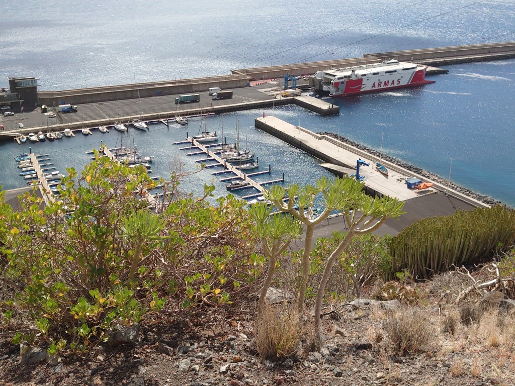Vid 10:30 kör vi genom tunneln och över berget till hamnen Puerto de la Estaca. Stannar ett par gånger efter vägen för att beundra utsikten.