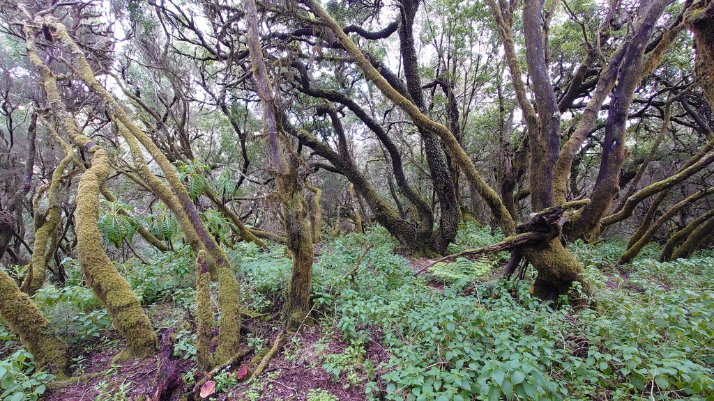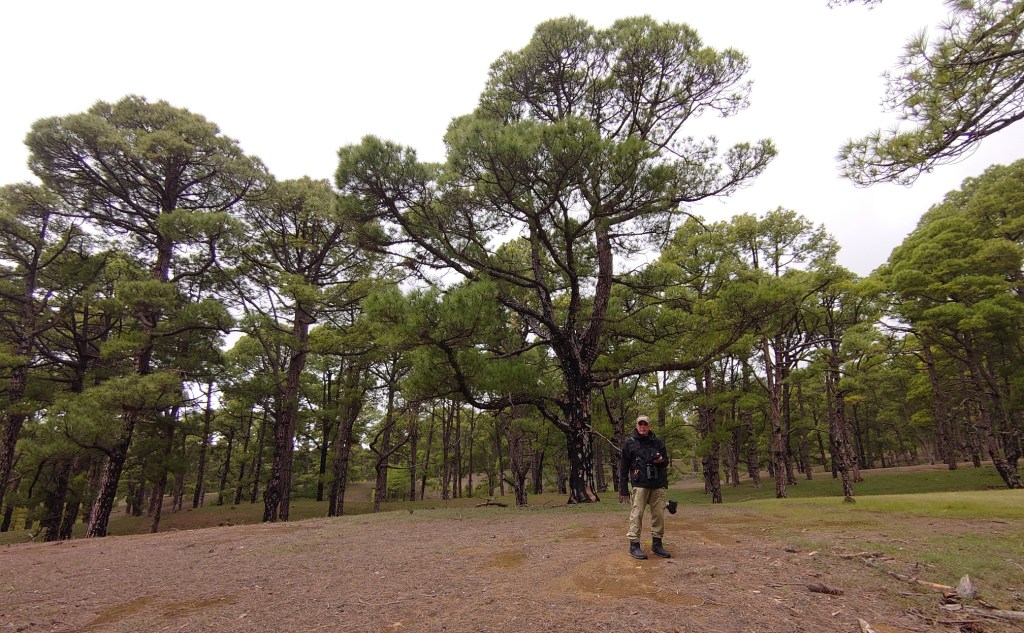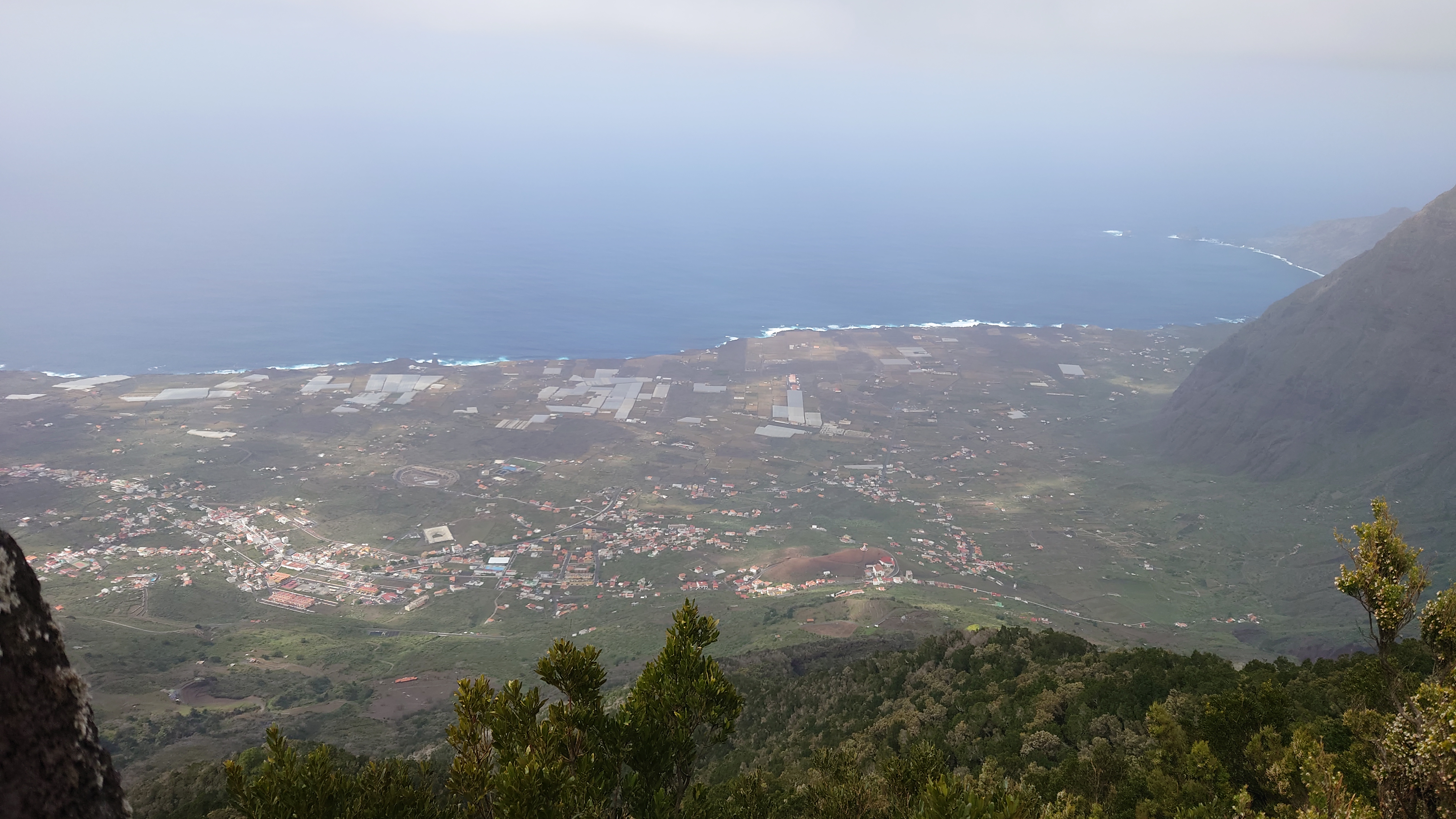 Den ligger i en lagerskog och det skall vara möjligt att se de endemiska duvorna. Trång parkering och fullt med bilar så vi ställer oss efter vägen. Efter lunch går vi stigen upp och det var bara 300 m till utsikten som var helt magnifik. Inga fåglar dock. Går sedan stigen nerför på andra sidan vägen. Kanariegransångaren hörs och plötsligt ser vi några bofinkar, underarten ombriosa finns bara på Hiero.