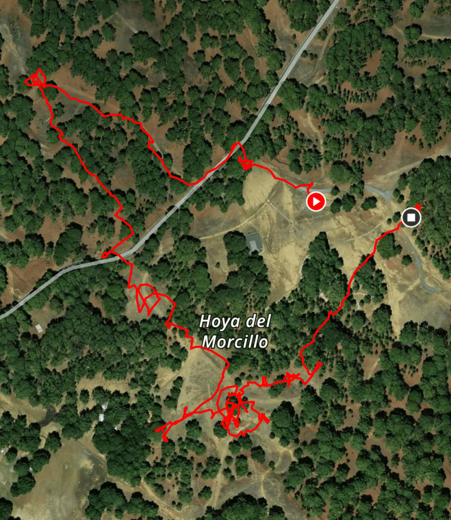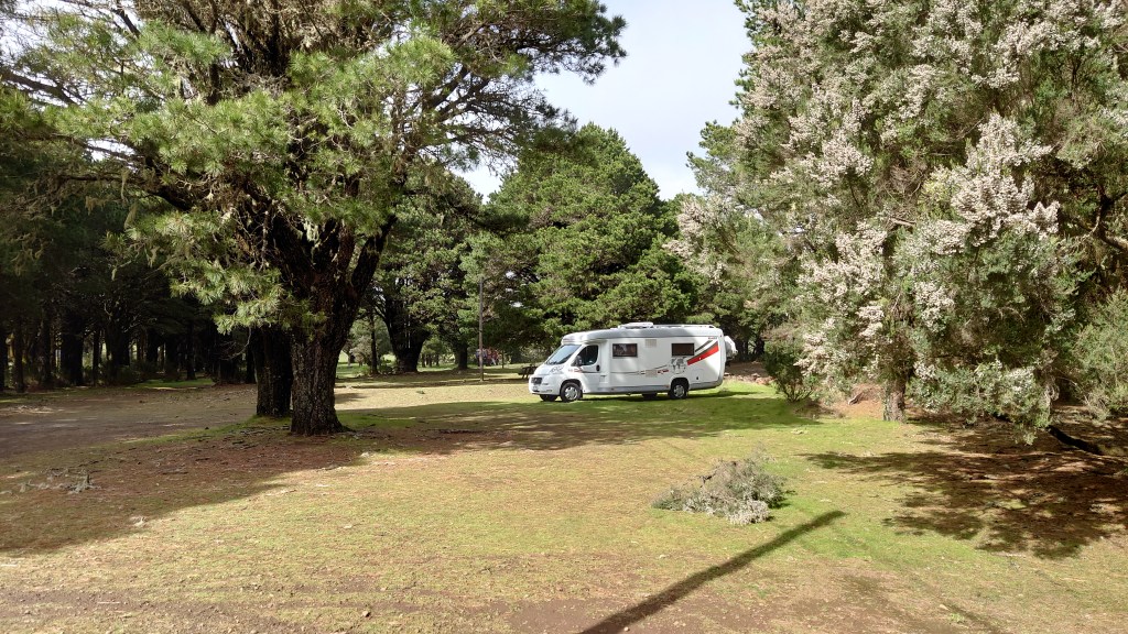 Det är mulet och +8 grader på morgonen. En stor flock med får kommer förbi bilen då vi äter frukost. Vid tiotiden kör vi till campingen, Hoya del Morcillo, bara 6 km bort och på lite lägre höjd, ganska precis 1000 m.ö.h.