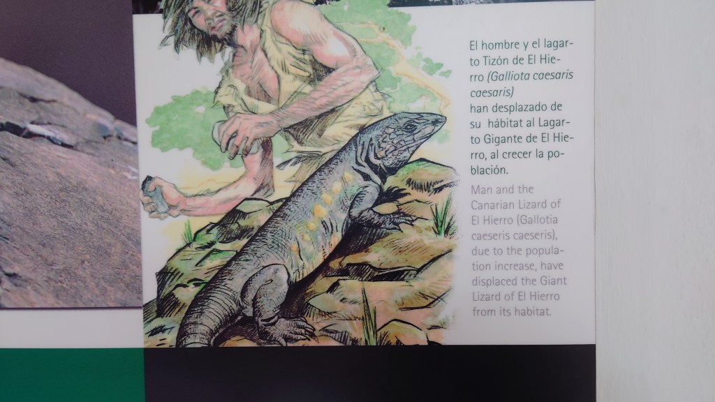 Ödlorna är ju i små hagar bakom glasrutor och dom var mycket mindre än vi hoppats på. Då spanjorerna kom hit fanns det hundratal av dom som var upp till en meter långa. Nu var den största omkring 3 dm.