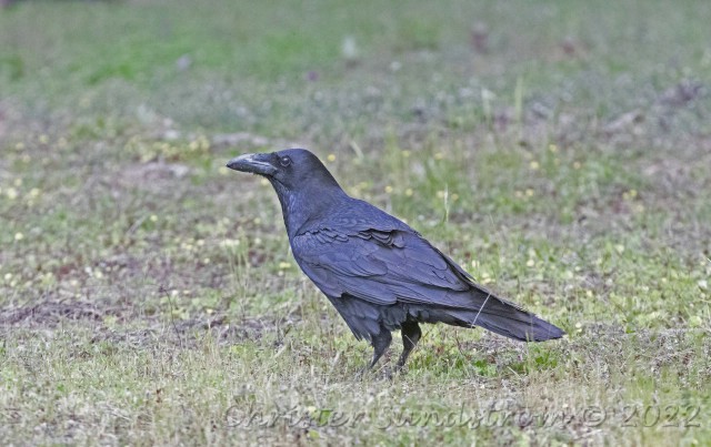 Nu kom korpen ner på backen utanför husbilen och i lite lägre tallar höll ett par koboltmesar till så nu blev det bra bild. Några kungsfåglar såg vi inte till. Det är mulet hela dagen och högst 14-15 grader. En husbil och några plåtisar anländer under dagen men mycket lungt på campingen. Vid 16-tiden kom en typ vaktmästare och kollade vårt dokument med tillstånd att stå här. Middag i bilen med nyheter och Let’s dance på TV:n