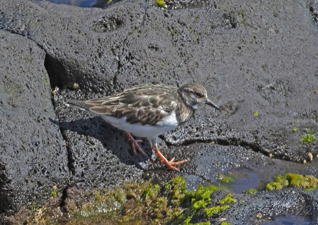 Det blev inget bad i dag. Går en kort sväng efter kusten på en bra stig. En orange lava växer på lavastenarna som en grupp turister fotograferar.