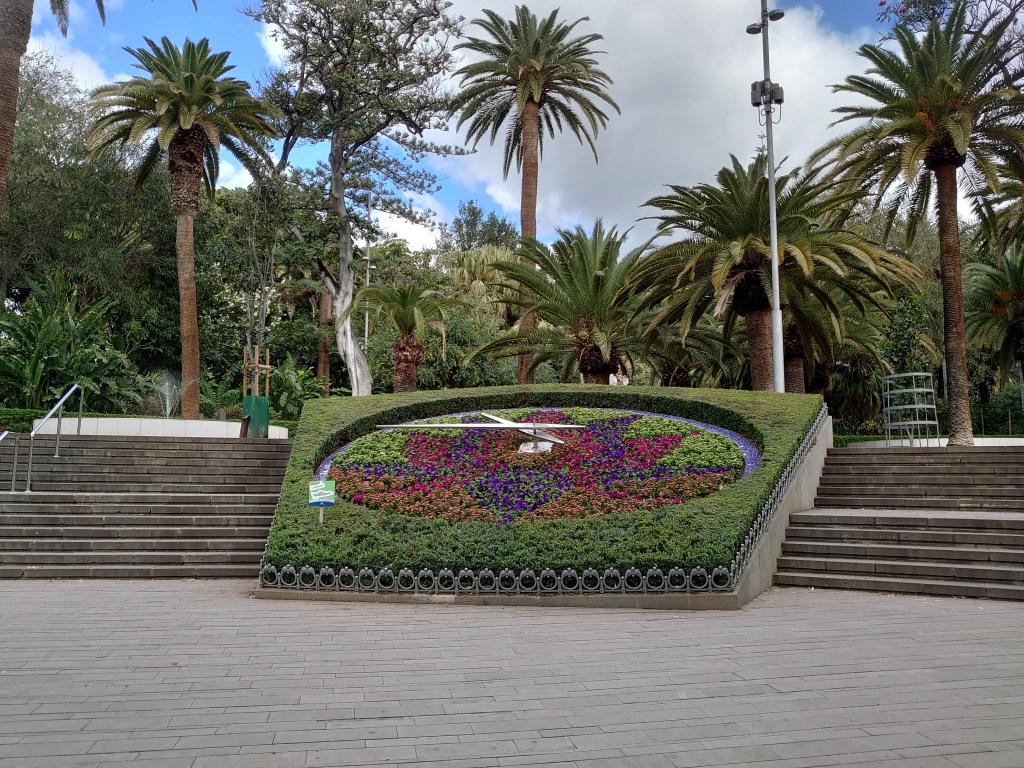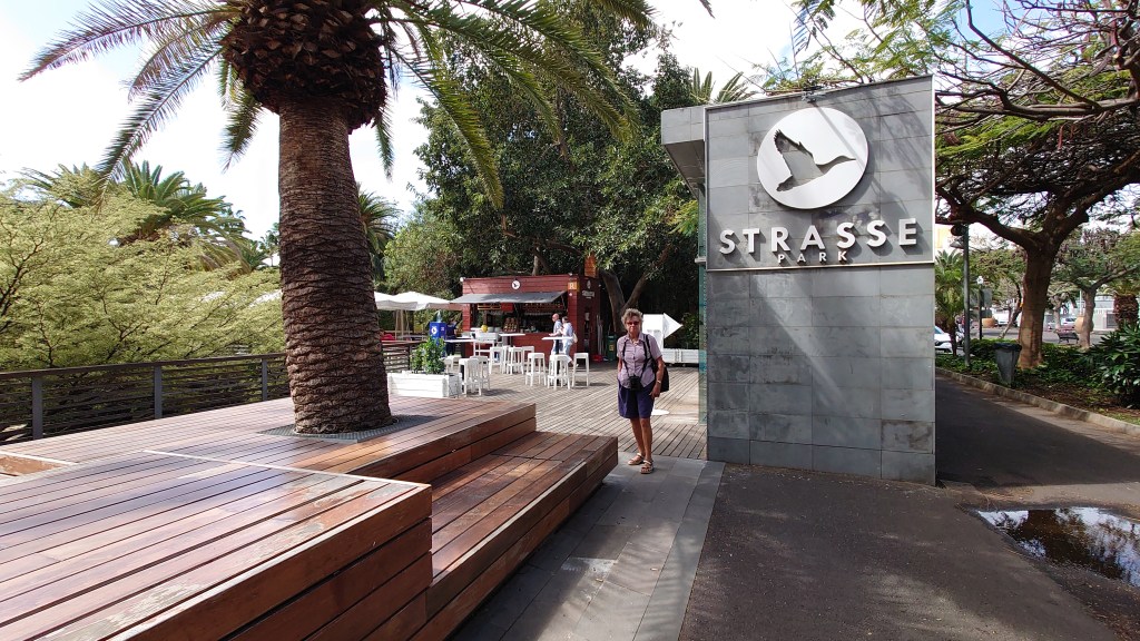 Vi stannar på parkeringen i dag. Efter frukosten tar vi bussen in till centrum av Santa Cruz. Det är ungefär 8 km ock kostar 2:50€ för två biljetter. Vi tänkte besöka Parque Garcia Sanabria som ligger centralt i staden. Vi går av bussen nära Plaza del Espania och promenerar omkring 800 m till parken. Väl framme tar vi varsin cortado och delar en chokladmuffins på caféet vid huvudingången.