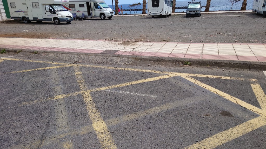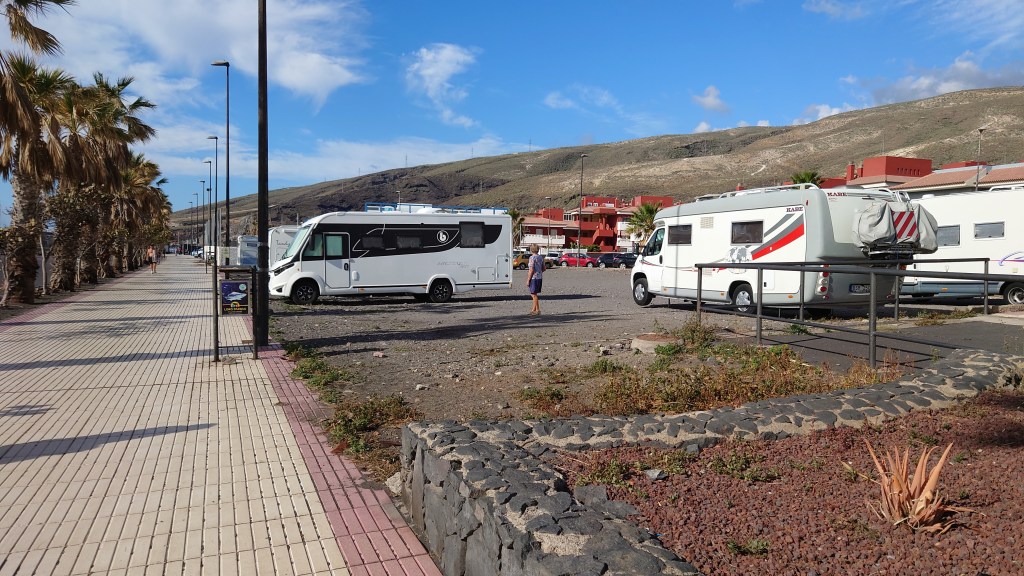 Vi stannar på parkeringen i Los Cristianos i dag. Mest mulet och omkring 20 grader.