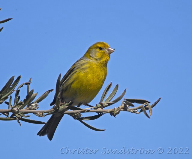 Blåfink skall finnas här men vi såg den bara flyga över oss. Däremot ser vi kanariegransångare, kanariesiska och koboltmes bra.