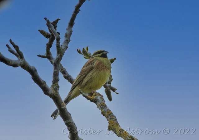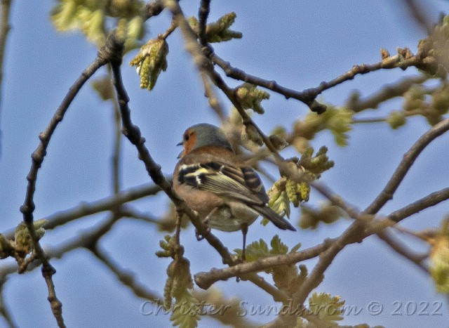 Bofinken sjunger för fullt liksom talgoxen och gulhämplingen. Svartstaren håller till högt upp på taket. Sydnäktergalen håller sig dold i björnbärssnåret och är omöjlig att få syn på. Sammetshättan tittade upp ur sin buske och gråsparvarna håller till runt receptionen. En blåmes kom plötsligt och på håll hörs göken. Skatan håller sin distans och högt i skyn kom både brun och röd glada. En ensam skäggdopping i en damm. En fin dag på en camping som inte var meningen. Efter lunch och trekaffet som intas utanför bilen i härligt solsken går vi ännu en runda nu för att kolla sydnäktergalen igen.