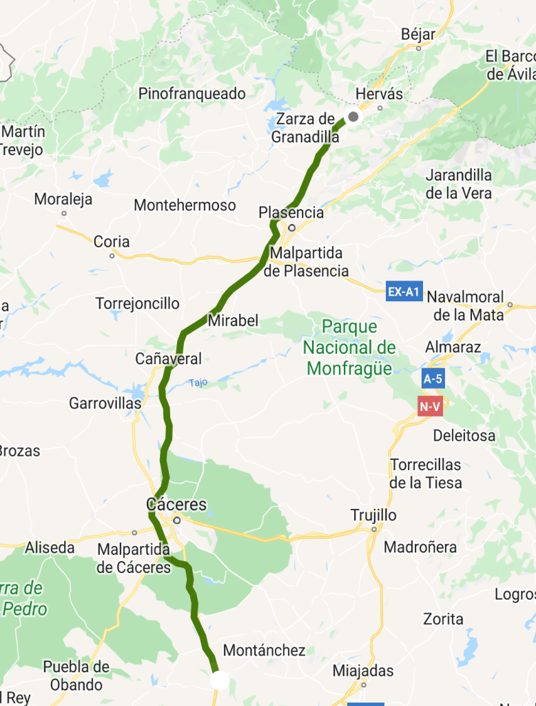 Vi kör direkt ut på motorvägen norrut mot Alaejos där en bra komunal ställplats finns. Motorvägen går över en högplatå där högsta punkten var 1163 m.ö.h.