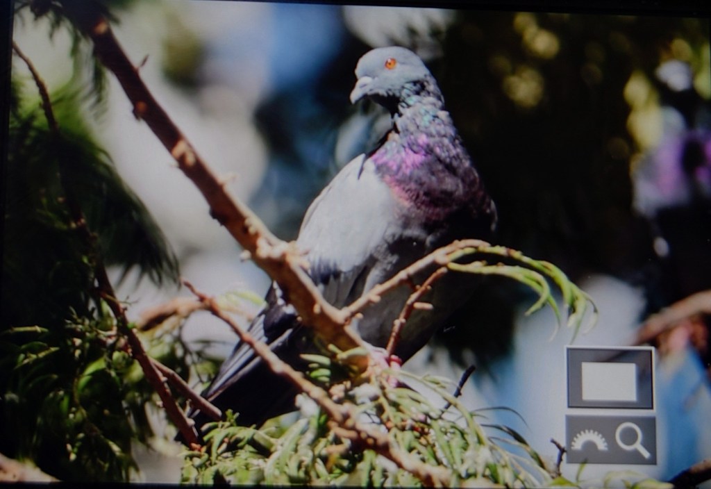 Några jättestora träd avslutade gågatan och där hölls en stor flock tamduvor. Det är mycket varmt, typ +30 grader och full sol. Satt en stund i skuggan då två turkduvor kom spatserade.