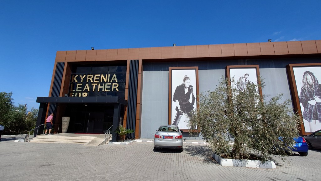 11:30 lämnar vi guldaffären och kör över bergen tillbaka mot Kyrenia för att besöka en skinnaffär, Kyrenia Leather Fur.