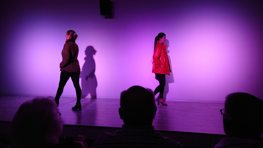Det började med en manekänguppvisning innan försäljarna tog över. Fantastiskt fin kvalitet på skinnjackorna men till fantasipriser, så vi köpte inget. Några i bussen köpte dock.