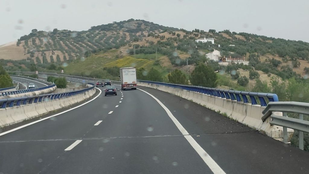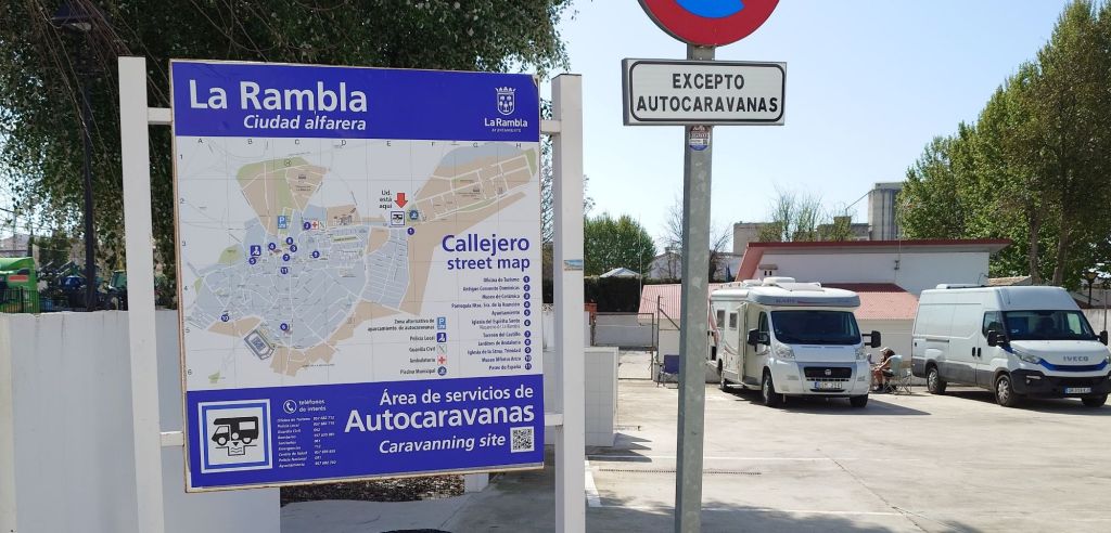Vi norrut kör mot en liten ort, La Rambla med en kommunal ställplats som är gratis. Det är lite trafik så det flyter på bra.