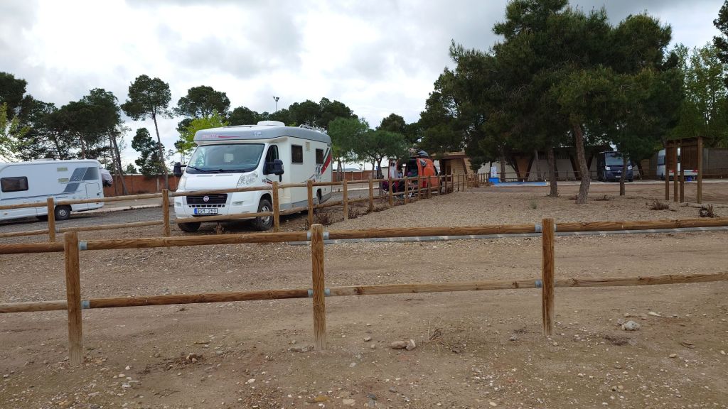Vi var ju här också för 2 år sedan. Nu har det regnat rejält. Vägarna var blöta och leriga och platsen vi hade tänkt stanna på och skåda från var blöt och lerig. Det regnar dessutom nu och väderrapporten hade gul varning för regn och blåst. Vi ger upp och kör till Quinto och den kommunala ställplatsen där, Quinto, Calle de Manuel Albar. Framme 16:30.