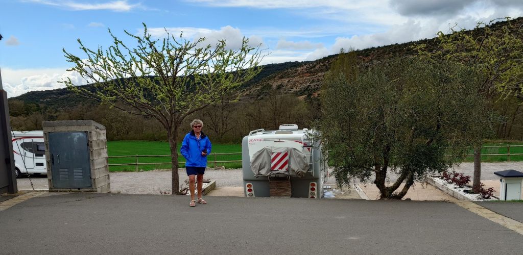 11:30 fortsätter vi mot en ställplats efter väg N-230 vid Viacamp. Stannar 12:30 vid första bensinmack som blev Estaciôn de Servicio Repsol och gör lunch i bilen. 14:00 kommer vi förbi en bensinmack med utomhus biltvätt. Vi kör in där och det är en jättebra biltvätt. Bara att stoppa i 1€ mynt. Spolar av bilen och sedan upptäckte Birgitta att vattenkranen i köket stått på efter lunchen så det blev översvämning. Med vått på golv och i lådor. Vi torkar ur och gör trekaffet i bilen. 15:40 fortsätter vi till Área de Autocaravanas de Viacamp.