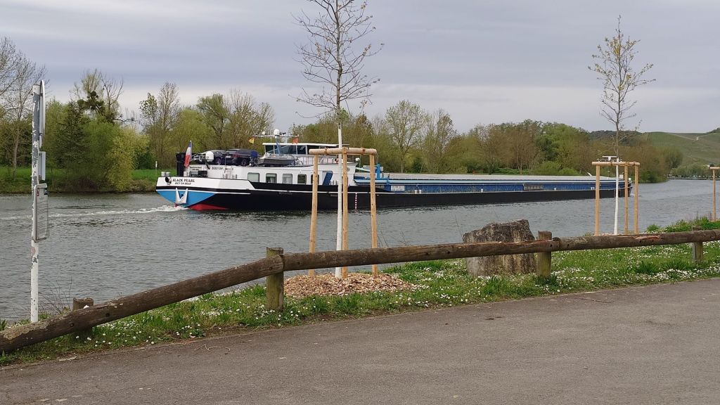 Fortsätter sedan och kör av motorvägen vid Thionville och det blev mycket smala vägar in till den kommunala ställplatsen vid Rodemack. Den låg öppet på ett gärde, det var mulet, kyligt och lerigt så vi gör lunch i bilen och fortsätter sedan till en ställplats i Luxemburg vid Remich.