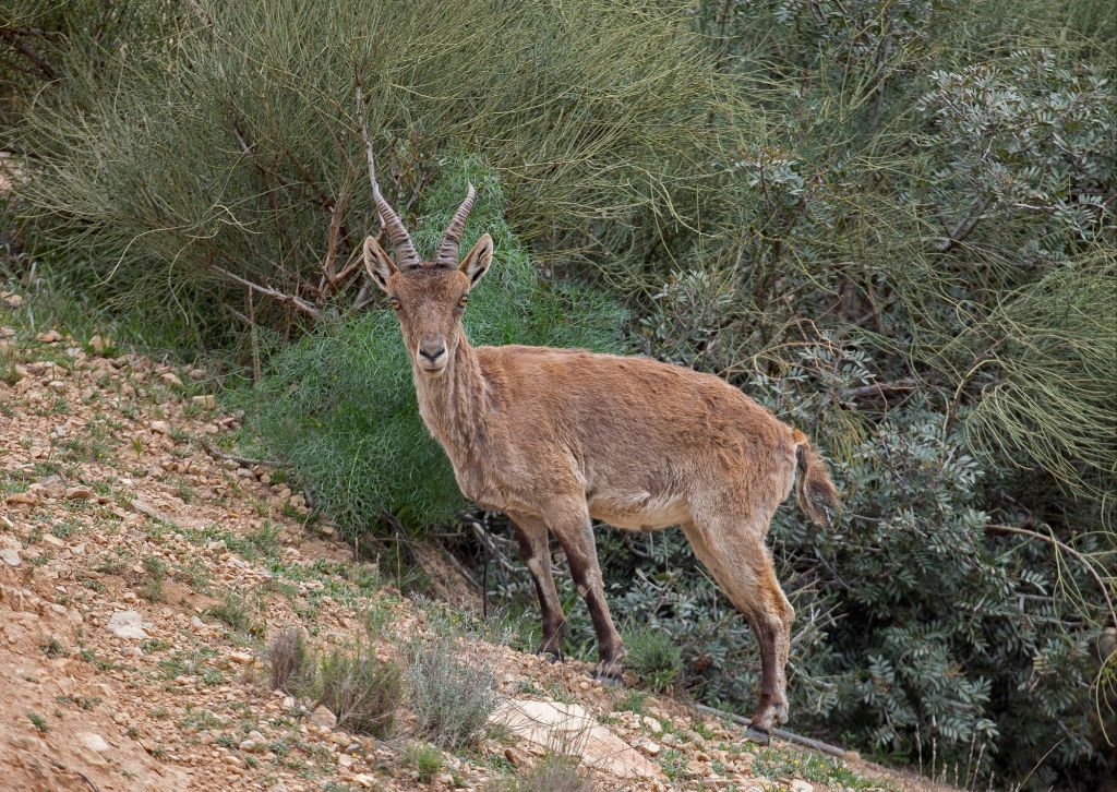 Jag fick syn på en Iberisk stenbock (Capra pyrenaica) som betade nedanför en klippa. Oväntad upptäckt.