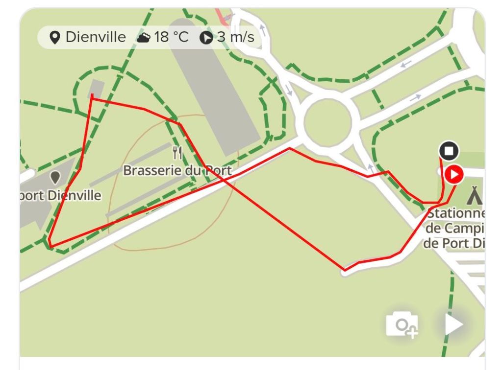 En stor parkering med 12 platser avsatta för husbilar. Bra plats för tömning och att fylla på vatten och gratis. Det har mulnat på men solen slank igenom. Vi tar trekaffet utanför bilen i hyggligt varmt +20 grader. En större sjö med badplats och några restauranger ligger helt nära.
