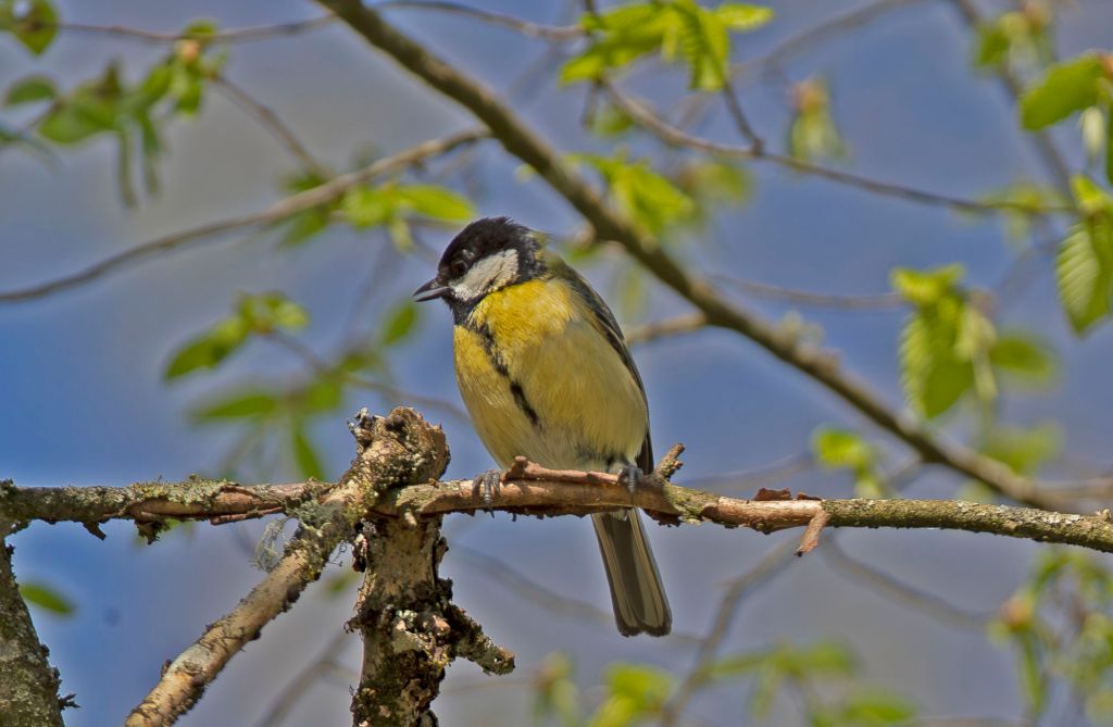Klar himmel på morgonen efter ännu en kylig natt, bara +8 grader. På morgonen innan frukost då jag drar ner gardinen för vindrutan kom en gröngöling flygande och satte sig på en asp 50 meter bort.