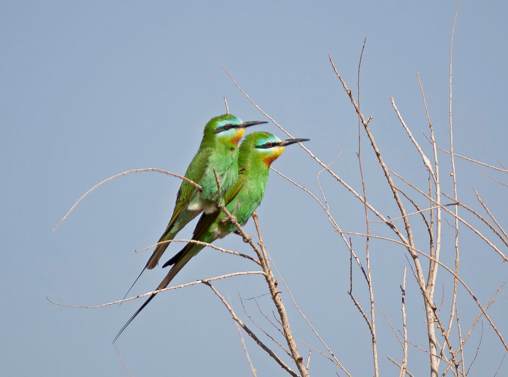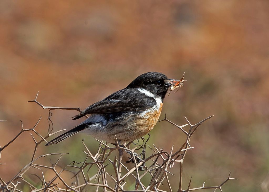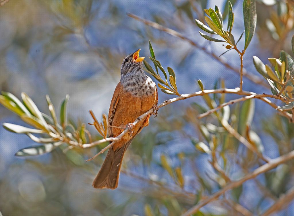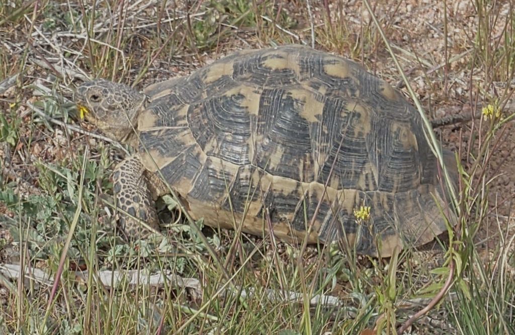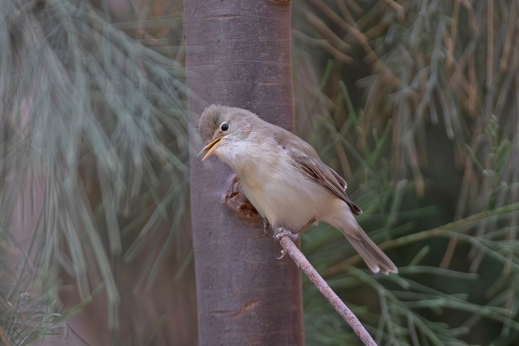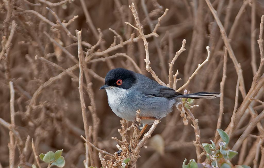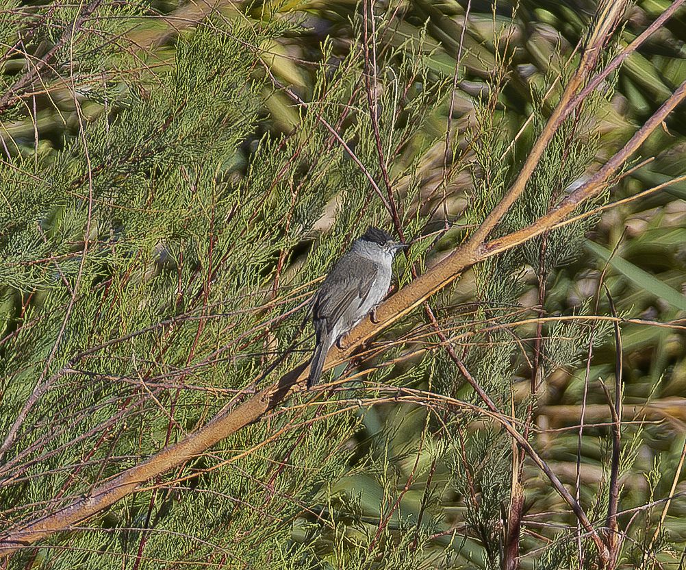 Jag cyklar uppför vinodlingarna på branta vägar upp till skogsbrynet. Där hörs bl.a törnsångare och svarthätta sjunga intensivt. Dom visade upp sig snabbt då jag lockade.