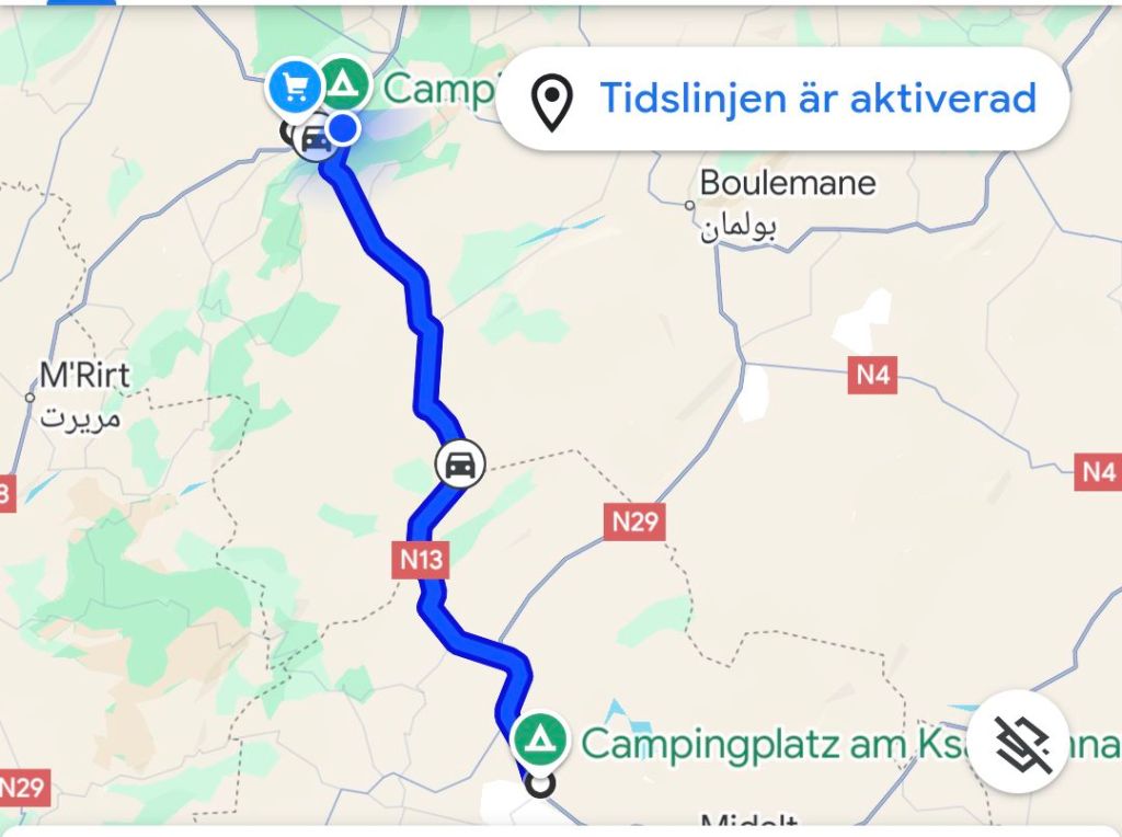 Missade en avfart innan Kassel så det blev en liten extra sväng innan vi kom fram till in Wohnmobilstellplatz Kaufungen strax efter 13:00. Vi var på denna ställplats också för 2 år sedan. Det är ju bara 3 markerade platser. En var upptagen då vi kom. Vi gör lunch i bilen då det är molnigt och lite kyligt i vinden. Gör trekaffet redan 14:30 och sedan tar jag elcykeln och Birgitta promenerar till den närbelägna parken med gångstig runt en damm.