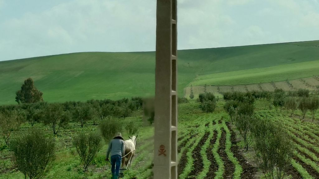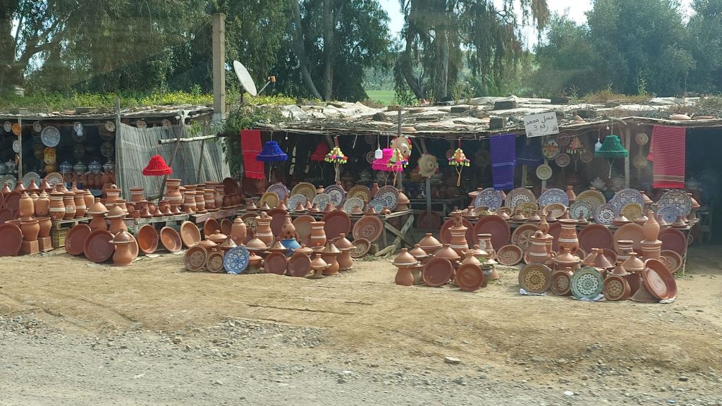 Mulen och kylig morgon efter en kall natt, +4,3 som kallast. Vi betalar 18€ i automaten för en natt med el, 16A:s säkring. Så bommen går upp och vi lämnar ställplatsen i Remich vid niotiden. Stannar strax utanför ställplatsen vid en liten marknad och kollar.